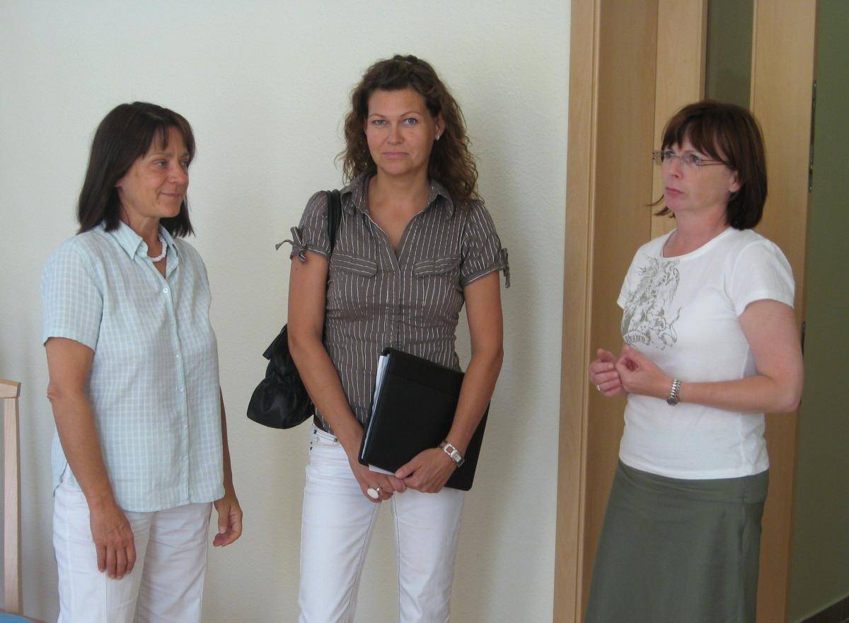 Bild oben: Die neue Bürgermeisterin von Schelldorf (Mitte) wurde am 1. Juli 2008 im Verwaltungsgebäude von Verwaltungsamtsleiterin Birgit Schäfer (li.) und Standesbeamtin Andrea Wiegleb (re.) begrüßt.