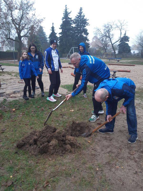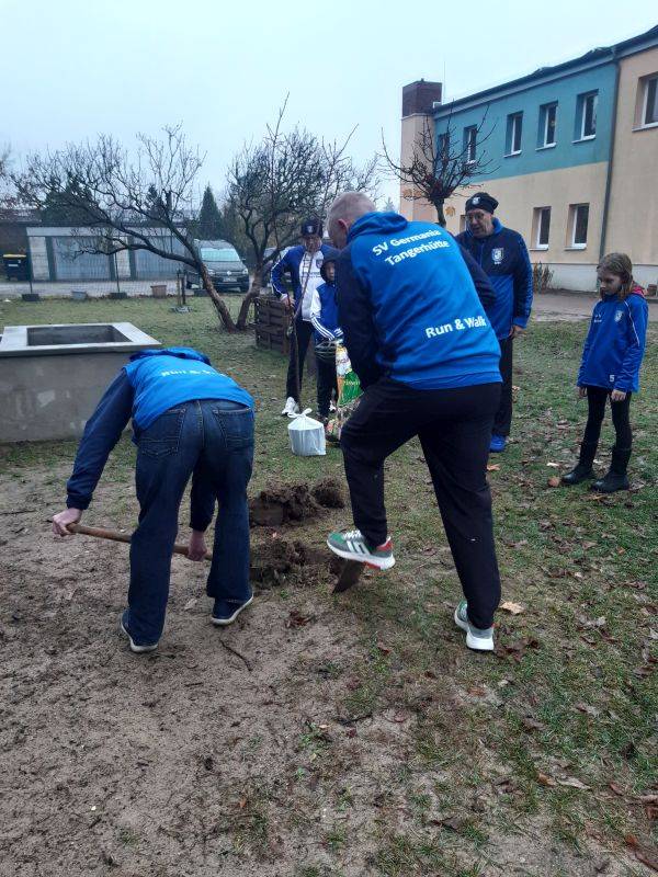 Am vergangenen Sonntag hat die Laufgruppe Run & Walk Tangerhütte im Rahmen einer Social-Media-Challenge einen Pflaumenbaum auf dem Gelände der Kita Anne Frank gepflanzt.