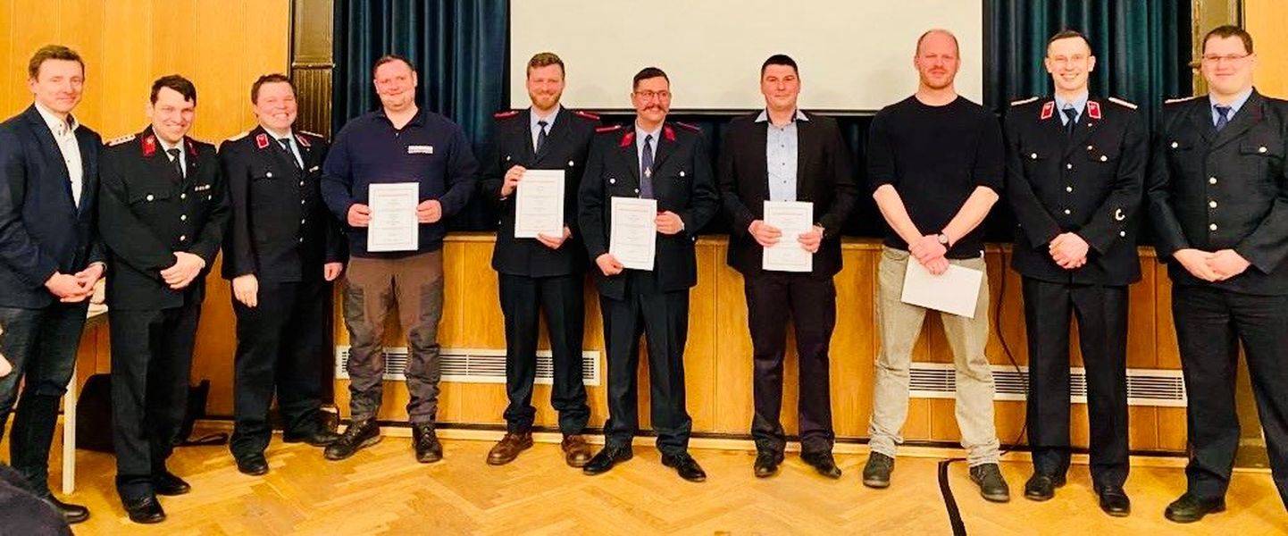Des Weiteren nahmen insgesamt 18 Kameraden an weiteren Ausbildungen Teil. Inhalt der Lehrgänge waren, Sprechfunk, Atemschutzgeräteträger, Truppführer, Technische Hilfeleistung, MKS-Führer, Maschinist, Technische Hilfe Bahn 1, Führen im TH-Einsatz Elektromobilität, Einsatzrecht, Vorbeugender Brandschutz, Gruppeführer und Brandsicherheitswachen.